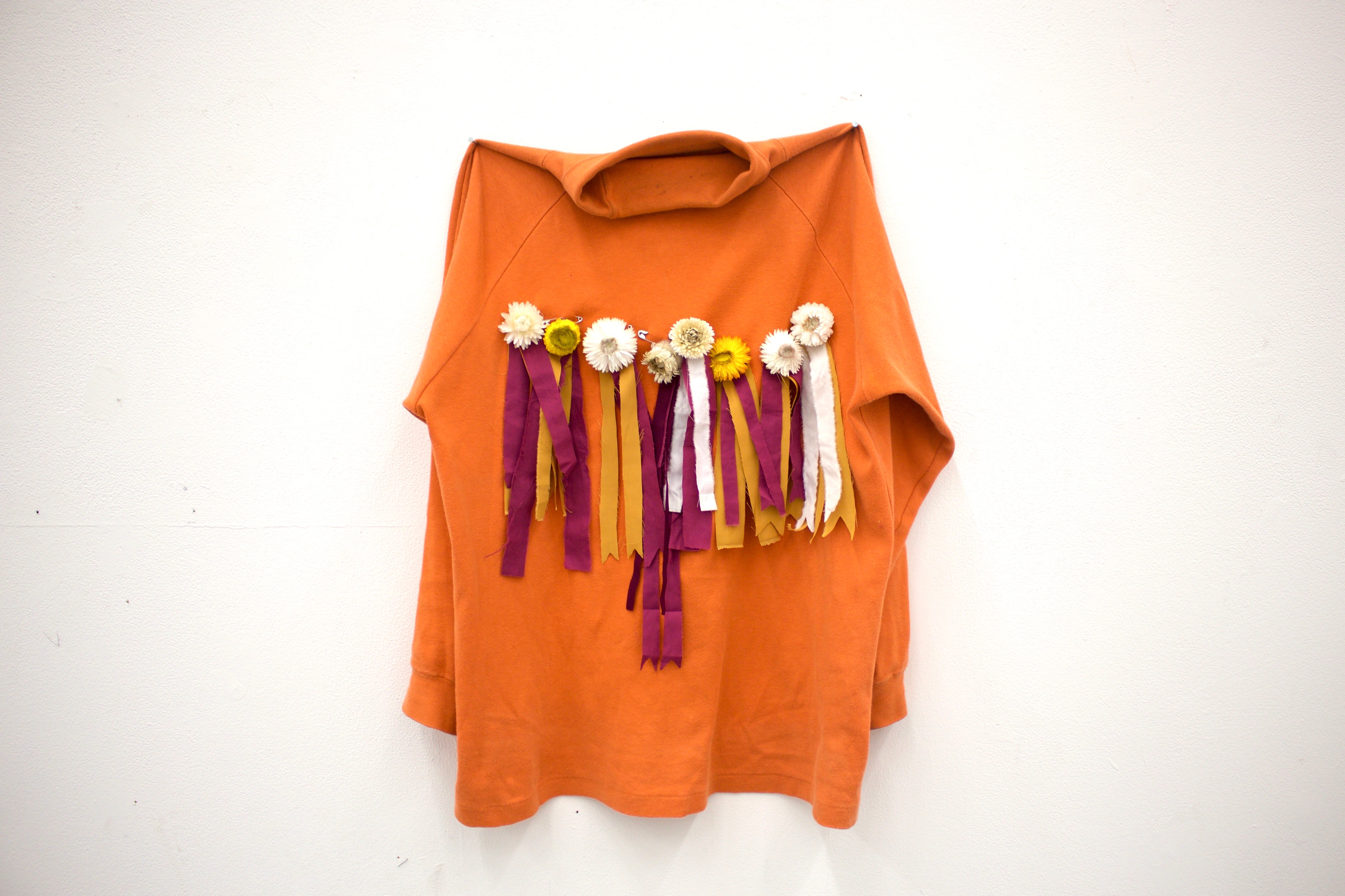 2019, Cotton, Everlasting Daisies, Acrylic, Safety Pin, Found Clothing